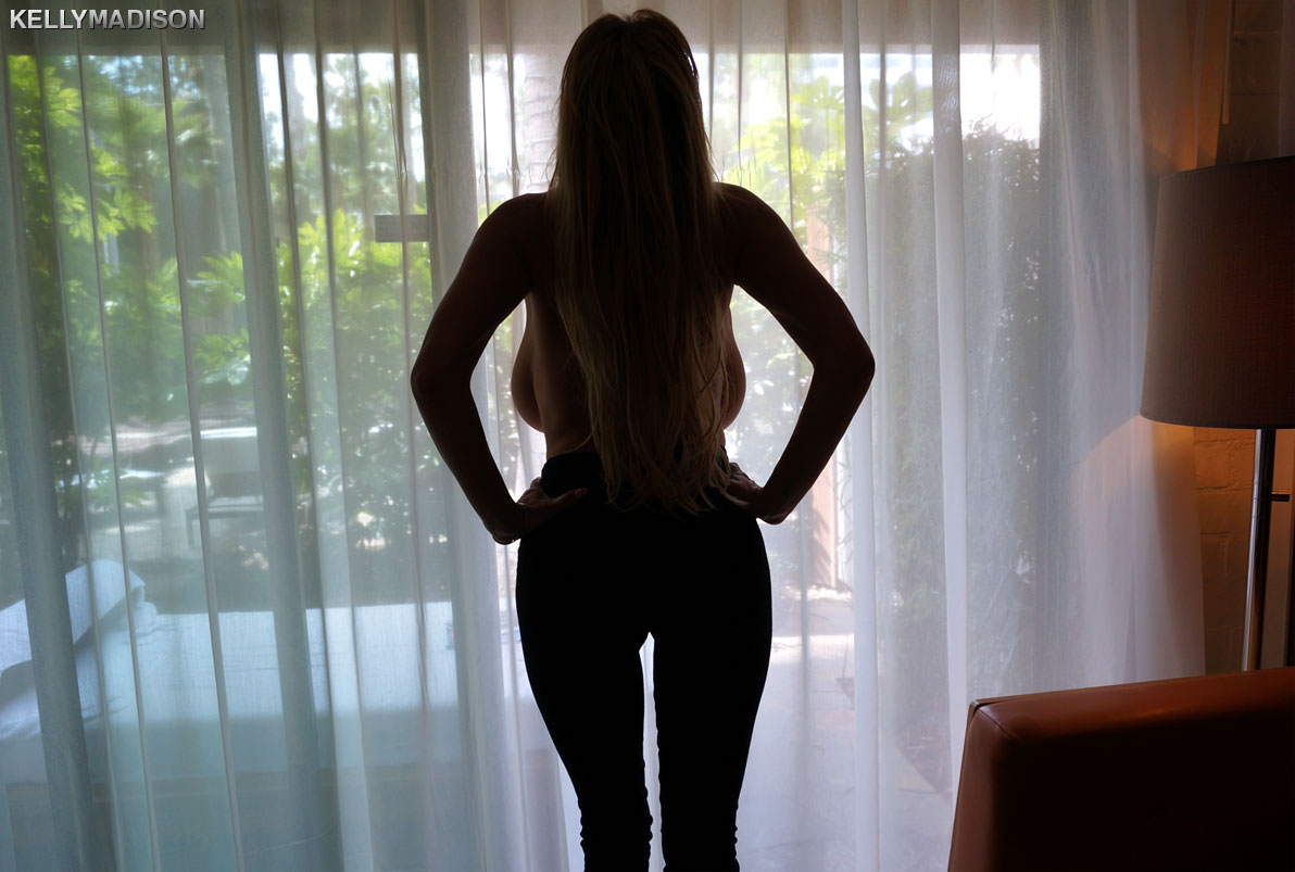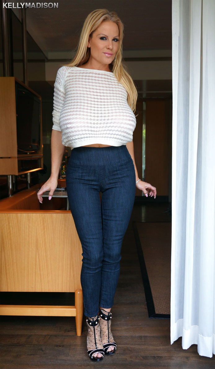 Relaxing in LA on a Sunday afternoon with Kelly Madison. Sweater boobs and tight jeans she looks pretty damn sexy just imagine you were fondling and sucking those big tits and that was your cock she is holding in her hand! You can watch a video clip of this episode here – .