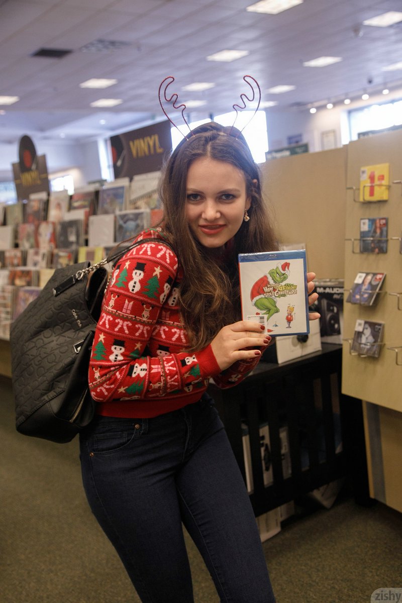 Imagine doing your Christmas shopping with a cute little vixen like Shelley Fox. Well not exactly little in the chest department, she has a nice handfull under her Christmas jumper and she likes to be naughty and flash those beautiful tits at you in every store she visits!